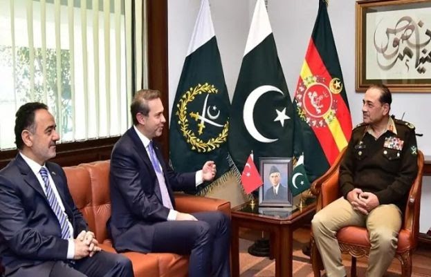 پاک فوج کے شعبہ تعلقات عامہ نے بتایا کہ اہم ملاقات میں پاک-ترک تعلقات مضبوط بنانے کے عزم کا اعادہ کیاگیا، آرمی چیف جنرل عاصم منیر نے ترکیہ کے ساتھ تاریخی برادرانہ تعلقات پر اظہار اطمینان کیا۔